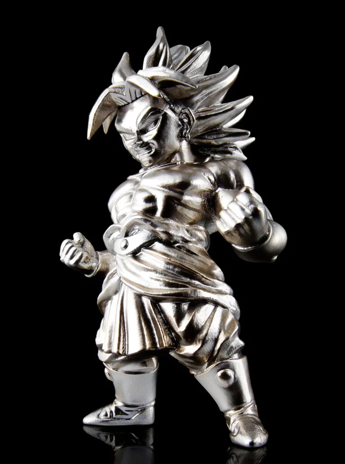 The Legendary Super Saiyan Broly came back for his revenge! 3” tall, this diecast figure from Bandai’s Absolute Chogokin line shows Broly in his Super Saiyan 2 form. You can get a silver or a secret color version (which is entirely random), but keep an eye on him as he likes to fight with Goku in particular!