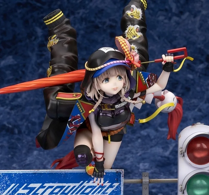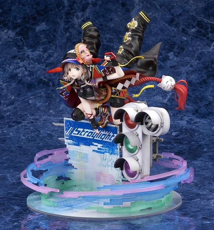 From the popular browser game The Idolm@ster: Shiny Colors comes a 1/7 scale figure of the inquisitive, spirited member of Straylight – Asahi Serizawa! Sculpted by Hiroyuki Tsumezuka at 11″ tall, the figure faithfully recreates her “The Sky, Blue, and You” card artwork from the game. Immaculate sculpting and paintwork capture every tiny detail of her outfit, and even the elements of the base including the traffic light and Straylight sign are sculpted with a realistic look, perfectly preserving the atmosphere of the original artwork. Packed with details to enjoy at every angle, don’t miss out on adding Asahi to your collection!