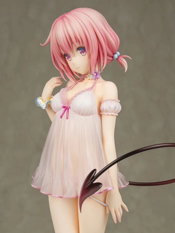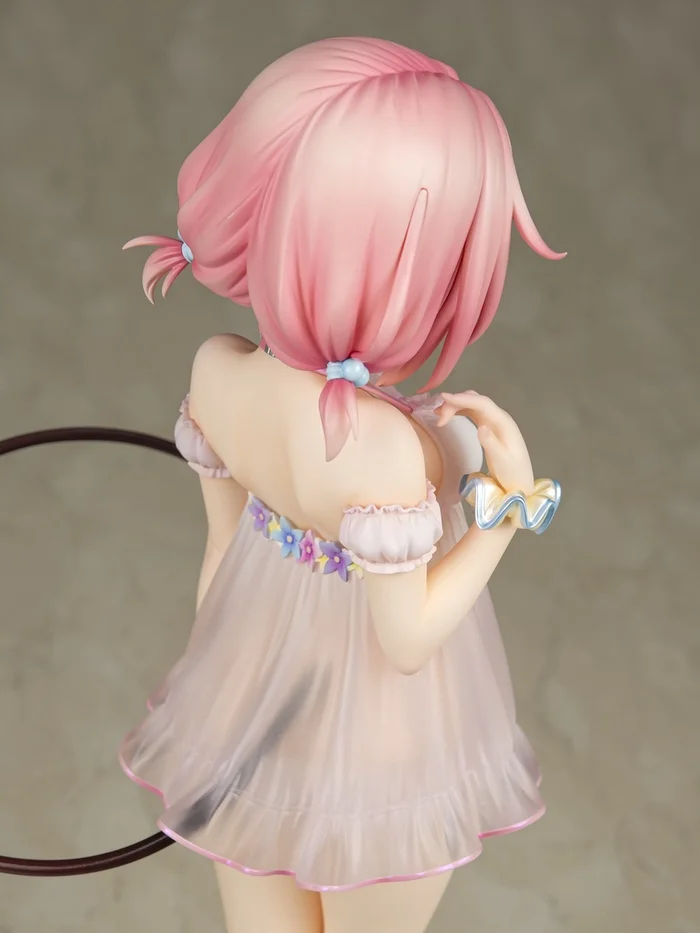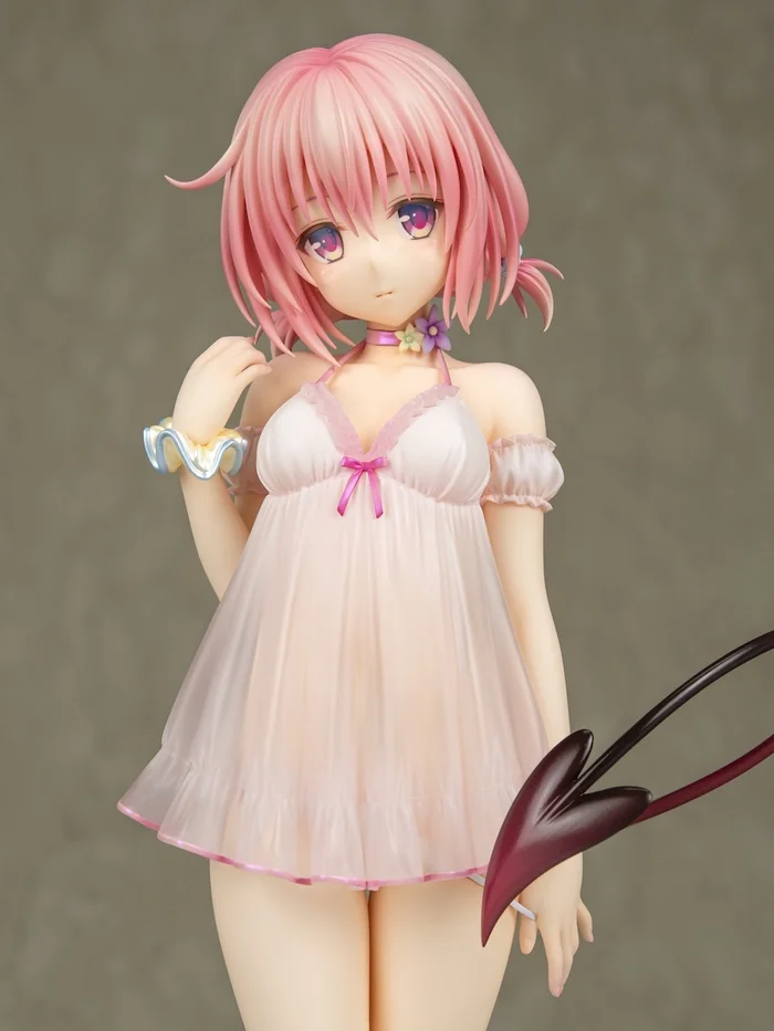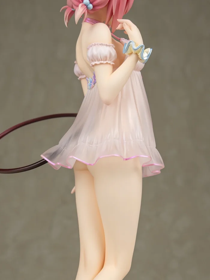 Momo looks ready to enact her Harem Plan as this 1/6 scale figure from Ryu-Ns that radiates with her sultry charisma. Dressed in a sheer babydoll that gets translucent toward the bottom, the To Love-Ru Darkness heroine is posed with one hand playing with her hair which is separated into two short, puffy twintails and her long legs on full display. Her black spade tail curls around her and gently lifts the back of her nightie, giving a peek at her cute little tush, as she shoots a shy, innocent look your way. Don’t let that fool you, though. She knows exactly what she wants and how to get it. Just look at her floral choker and the way she is using her other hand to slyly pull down her panties! Naughty, naughty!