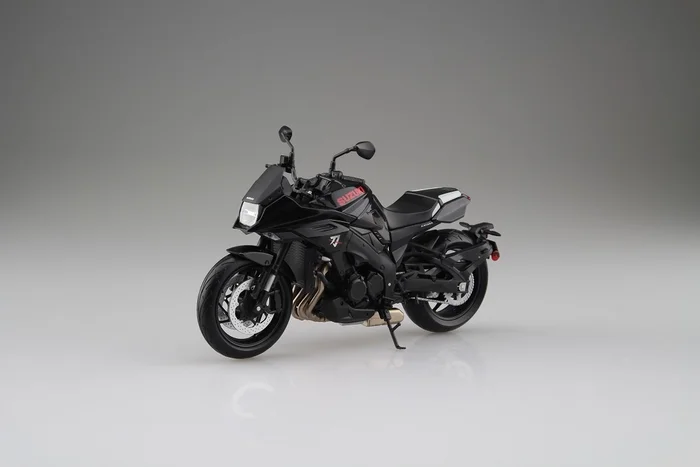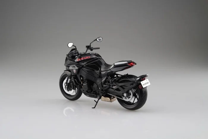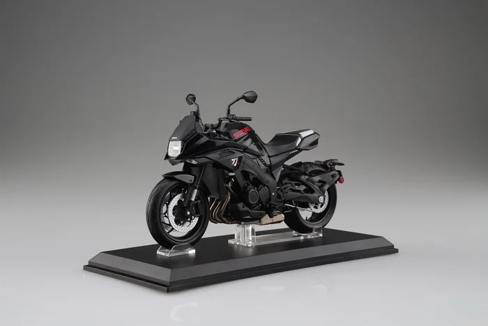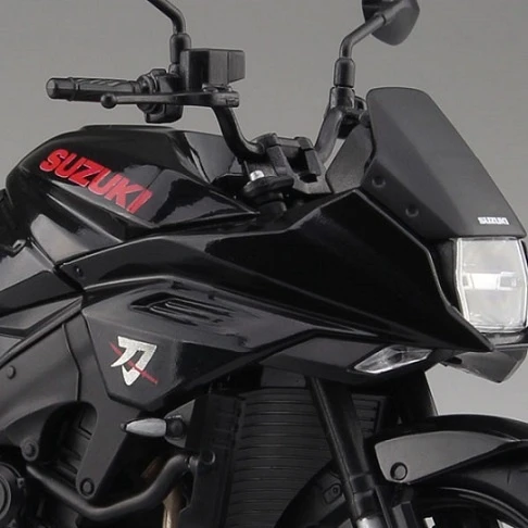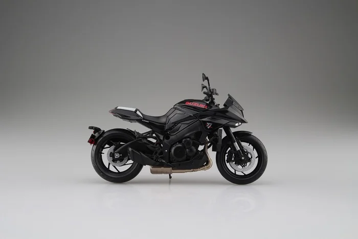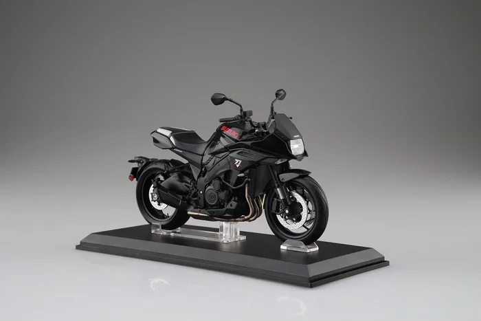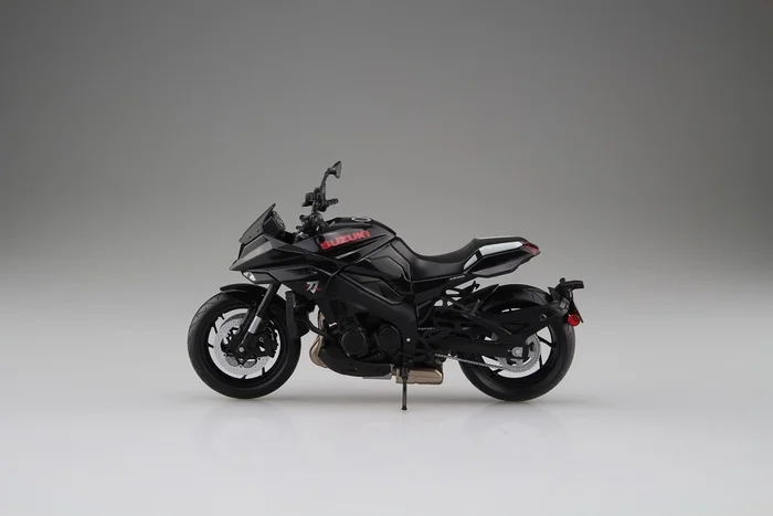The classic GSX-S1000S Katana joins Aoshima’s motorcycle figure collection with this beautifully detailed 1/12 scale model. In a deep glossy black, the bike features all of the Katana’s iconic details right down to the Suzuki logo in red and Katana symbol on the front.