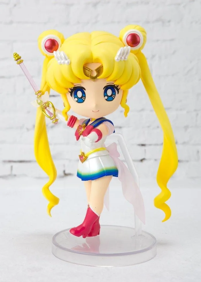 From Bandai comes this Figuarts Mini figure of Super Sailor Moon (Eternal Edition) from Sailor Moon Eternal. Despite her petite size of 3.5”, she is highly detailed and even comes with an alternate hand holding her Moon Kaleidoscope. The paintwork of rich blue, vivid magenta, pearlescent white, and metallic gold has been completely cleanly and precisely. Transparent pieces including the wings on her Moon Kaleidoscope and her back bow add a special touch. Freely pose her arms, legs, and head to your liking. Let her bring magic and cuteness to your collection! Perfect for display with Super Sailor Chibi Moon Eternal Edition (sold separately).