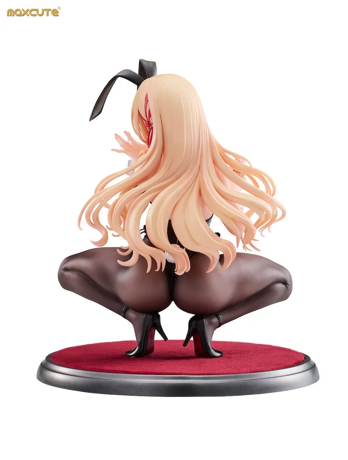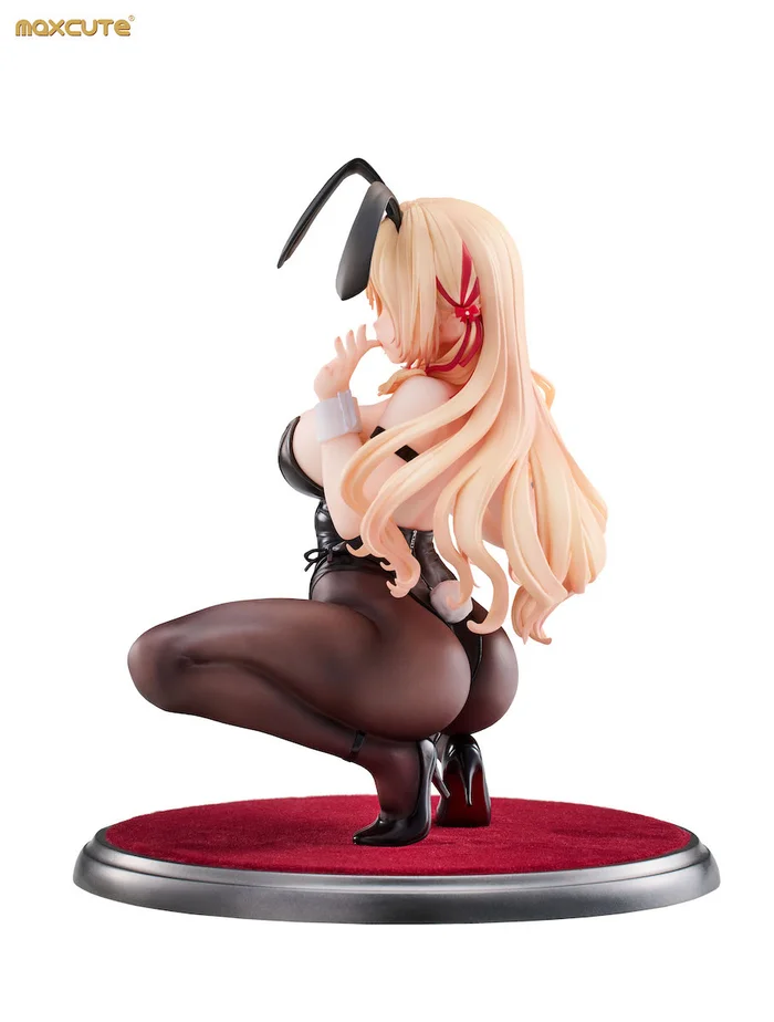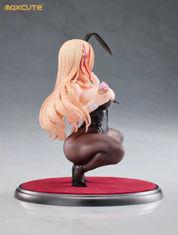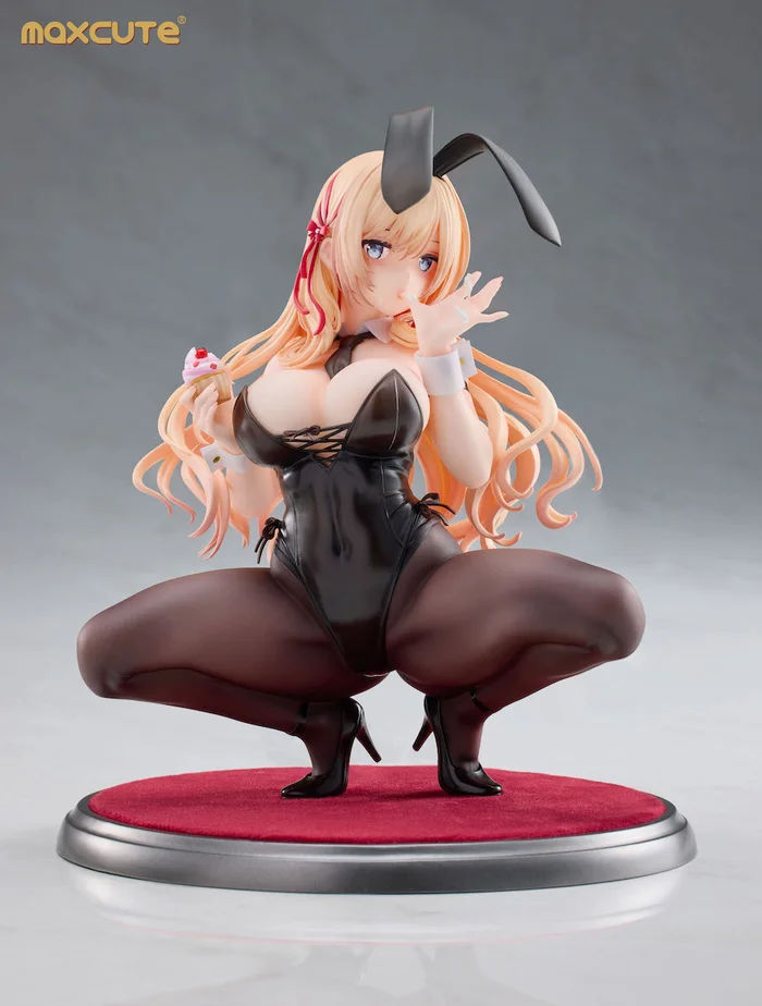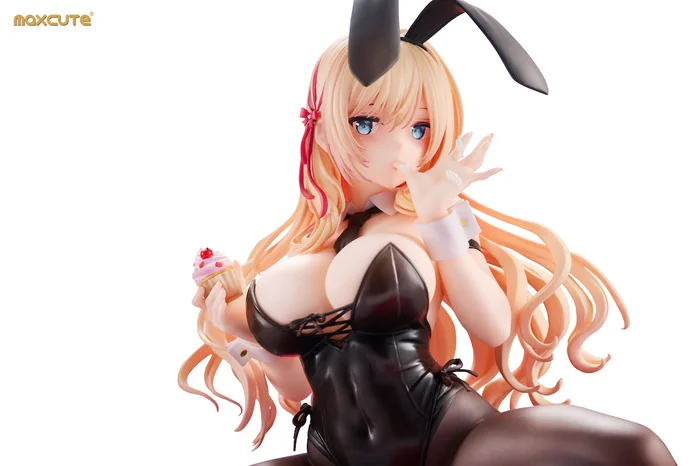 Holy moly! This bunny girl is taking the Year of the Rabbit to a whole new level! Based on an illustration by Oryou, maxcute has produced this lovely lady creatively named “Baniga” in 1/6 scale. Baniga is dressed in a black, latex leotard that reveals her bouncy charms. Paired with black tights and sculpted in a provocative pose, her bountiful backside is also emphasized. Too bad Baniga is a messy bunny – she has to lick cupcake frosting off of her finger tips! Have a napkin ready next time, sheesh!