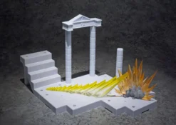Standing at a height of 3.9”, he has been carefully painted, capturing the shine and royal atmosphere of his armor. He also comes with two expression parts, hair for when displayed without a mask, two sets of optional hands, Excalibur effect parts, explosion effect parts, gate parts, large and small bases, a staircase, a set of structure parts, and a support arm and clip.