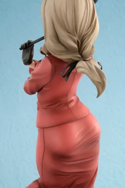 Looking calm and serene as usual, Chiyo Shimada stands with one foot in front of the other, the wind lightly picking up the end of her long, elegant skirt as she holds a closed fan up to her smile. From Amakuni and expertly sculpted by Roin, she stands 9.6” as a 1/7 scale figure. Highlights include the clean painting of her expression as well as the intricate details of her glossy, lace-up boots. Atop her hair which is pulled into a loose ponytail with a black ribbon is her beret which she can be displayed with or without. Careful shading of each fold in her outfit, especially on her rump, brings it all to life. Add her to your collection to remind you that intelligence is important for beating enemies!