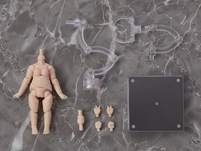 This woman version comes in a cream skin color and features a longer neck joint for better use with a range of fabric outfits, optional hand parts for creating cute poses, magnetic feet for easy posing and displaying, and an articulated stand for recreating intense action poses. The doll body is compatible with most Nendoroid head parts, and customizable Nendoroid Doll head parts are also available separately, giving you plenty of options for mixing and matching to your heart’s content!