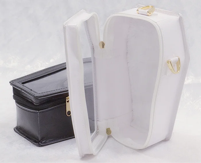 Due to popular demand, Good Smile Company is re-releasing the black and white Nendoroid Doll Pouch Neo: Coffins! The coffins are made of artificial leather and come with a matching strap. And your Nendoroid Doll is sure to rest peacefully on the faux fur inside!