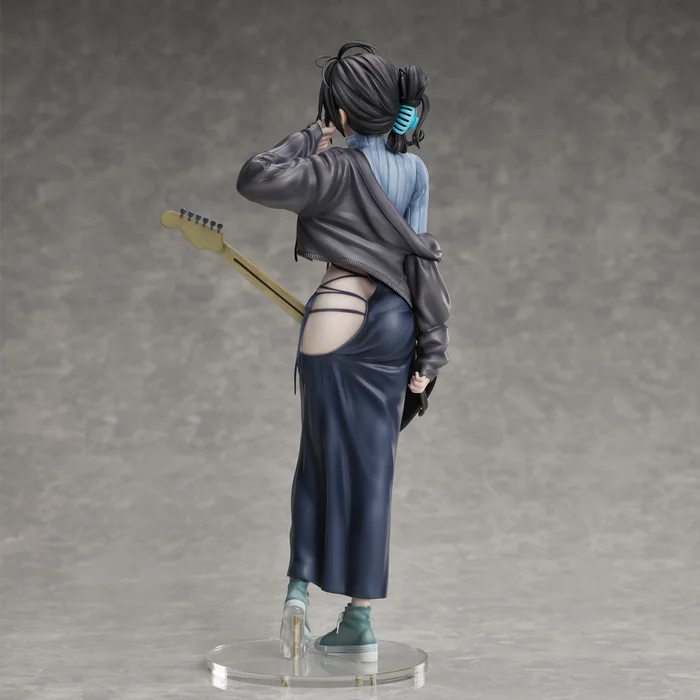 Union Creative introduces a non-scale figure of illustrator hitomio16’s original character Guitar MeiMei in a backless dress! Sculpted by PAINT Kimura at 10.2” tall, she poses brushing her hair out of her face as she gives a soft smile that shows her older sister-like charm. She wears a form-fitting knit top over a bold, backless black dress with her short jacket hanging loosely off one arm. Of course, she’s also rocking her black Stratocaster-style guitar which is detailed down to the pickups, knobs, and strings. She’s ready to rock out as part of your collection!