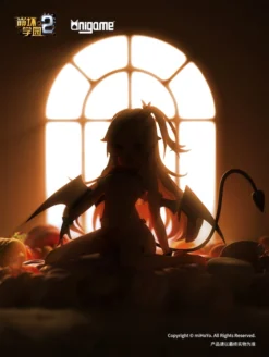 From the popular mobile game Houkai Gakuen 2 comes a 1/7 scale figure of Mobius’ auxiliary AI system, Femilis, as a succubus! Produced by AniGame, Femilis sits straddling a large cushion in a skirt and short top that shows her midriff as she smiles mischievously. Her crimson eyes and bold loungewear are a perfect recreation of her appearance from the game, and her playful pose gives her a lovely silhouette. An interchangeable face part is also included, giving you two ways to display her. Be sure to welcome this devilishly cute and sexy succubus to your collection!