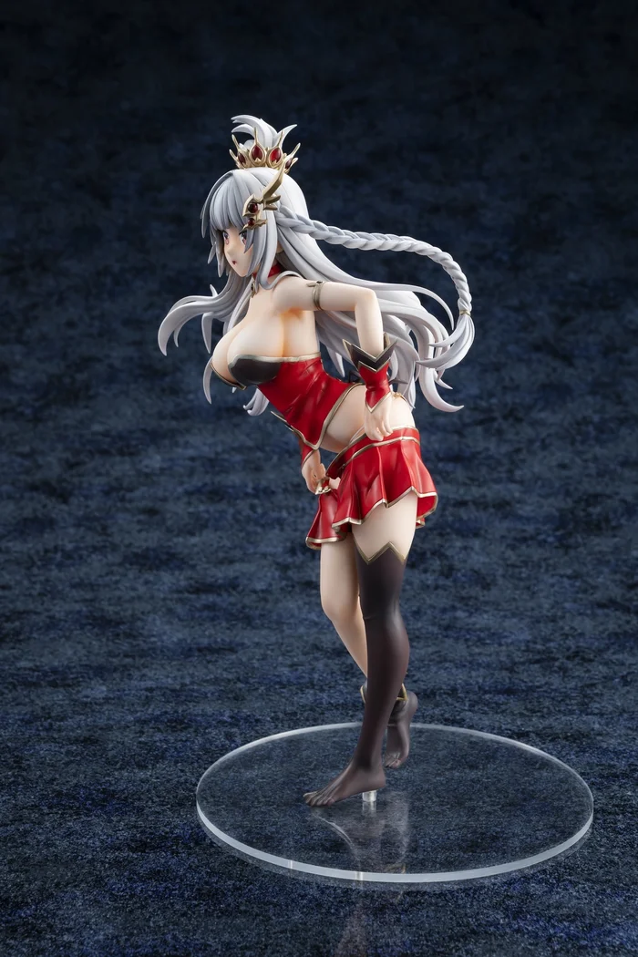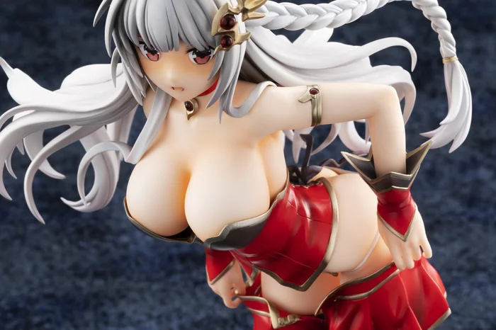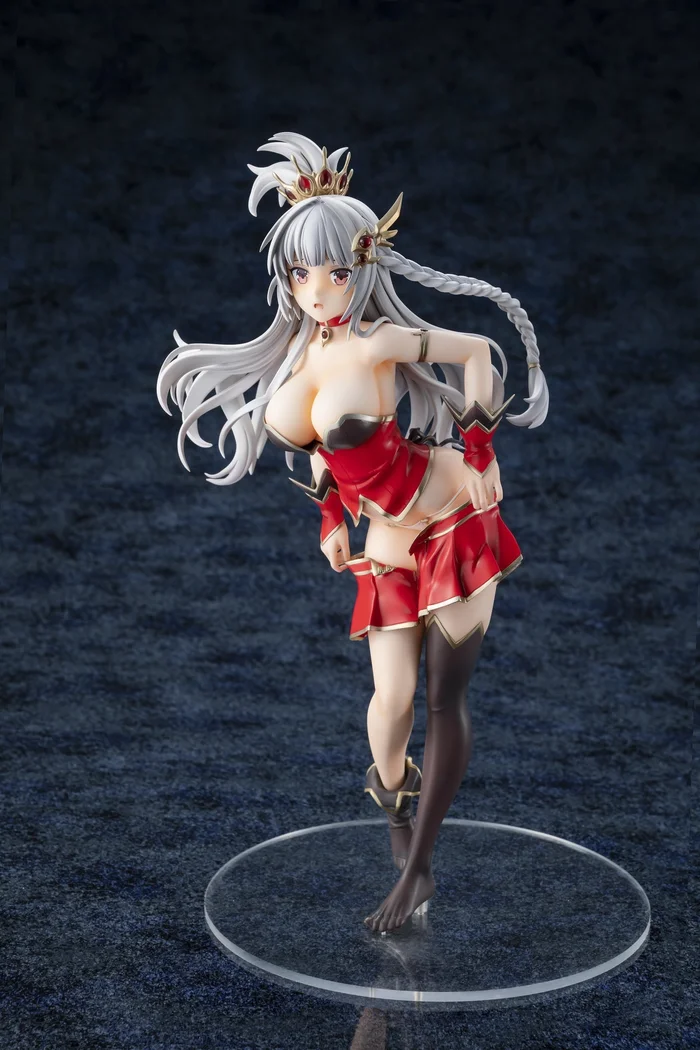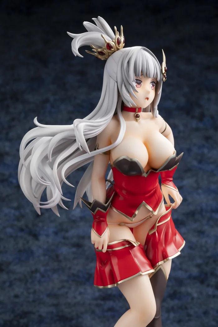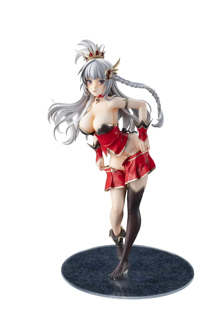 From Kadokawa and sculpted by Ajiken comes this 1/7 scale figure of Levantein-Hell from the mobile game Brave Sword x Blaze Soul. Measuring 9.1”, she is posed pulling up her skirt looking embarrassed and surprised as her busty chest reaches forward and her white panties are in full view. Her rich red, black, and metallic gold outfit has been faithfully recreated down to her choker and hair ornaments that both have translucent parts for the red gems. Her silver gray hair has also been carefully sculpted to be swaying with her movement, and her braid looks great. Her beauty and craftsmanship will stand out in your collection!