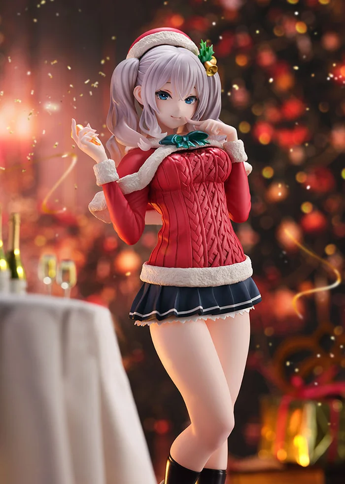 From the popular browser game Kantai Collection -KanColle- comes a 1/7 scale figure of Katori-class training cruiser Kashima in a special Christmas-themed look! Sculpted by Yasuhiro Uchijima, the 10” tall figure captures her in a red and white knit top, short skirt, fur-lined red boots, and a Santa hat as she poses coyly with a mischievous smile on her face and a cracker in hand.