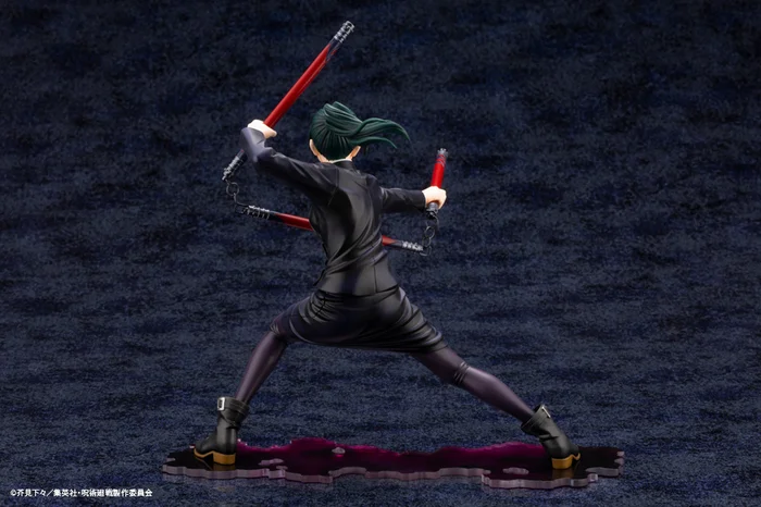 From Kotobukiya and sculptor Koei Matsumoto comes an ArtFX J figure of the headstrong jujutsu sorcerer with zero cursed energy from the popular anime series Jujutsu Kaisen – Maki Zenin! Measuring 8.3″ tall in 1/8 scale, she is captured in her Jujutsu High uniform in a battle stance wielding her Playful Cloud Cursed Tool, which features real iron chains. Her pose and confident expression show her determination to become strong enough to lead her clan, and she stands on an ink-like base inspired by the world of the series that matches the other characters released so far. Don’t miss out on adding her to your collection!