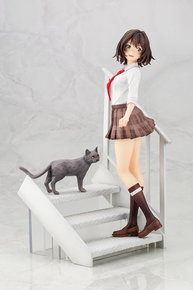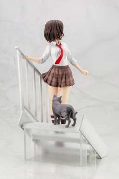 From Kotobukiya comes a 1/7 scale figure of the perfect heroine gifted with both beauty and intelligence, Aoi Hinami from Bottom-tier Character Tomozaki! Measuring 9.4” tall, she is sculpted in an everyday pose and captured walking up a staircase at school with a stray cat on the top step as she looks back over her shoulder and gives a big, heartwarming smile. Details include the soft flutter of her skirt and hair in the breeze, the look of her soft skin in contrast with the metal stairs, and her expression which is made even more alluring by the soft blush on her cheeks. Add her to your collection!
