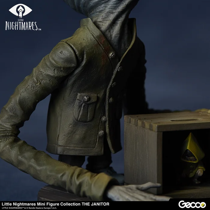 Gecco brings Little Nightmares to life as beautifully painted figures that fit in your hand! The Janitor from the spine-tingling game has been perfectly realized, from his lanky arms to his creepy smile. A miniature version of Six hides within his grasp!
