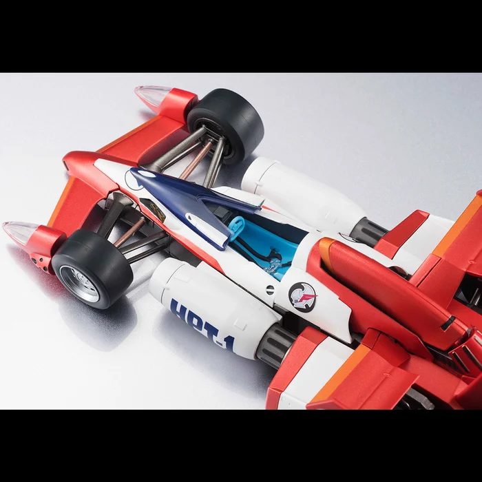 Knight Savior glides into the VA Future GPX Cyber Formula collection with this striking metallic color scheme! Similarly to the regular edition, the canopy window can be displayed open or closed and you can even see inside to the cockpit. The set also includes a bonus driver mini figure that can be displayed standing alongside the car.