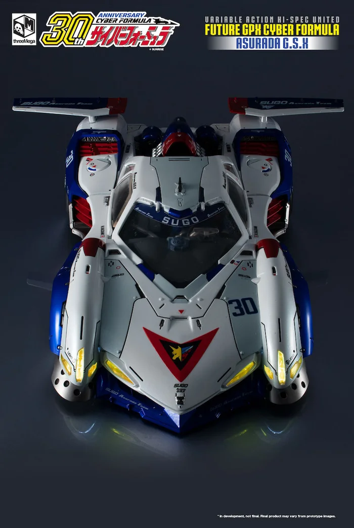 Put the petal to the metal with this revolutionary new collectible of the Asurada GSX from Future GPX Cyber Formula! As part of MegaHouse’s Variable Action Hi-Spec line, this vehicle figure possesses an absolutely stunning level of detail and features die-cast parts. It boasts real working headlights and afterburner visual effects thanks to built-in LEDs, while the race car’s doors, tires, and trunk can all move. And on top of that, an articulated and fully colored 1/18 scale Hayato Kazami figure can be placed in the driver’s seat! But that’s not all. The vehicle also comes with a base made to look like part of a race track!