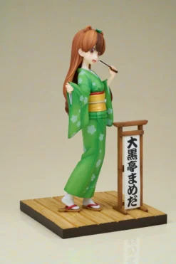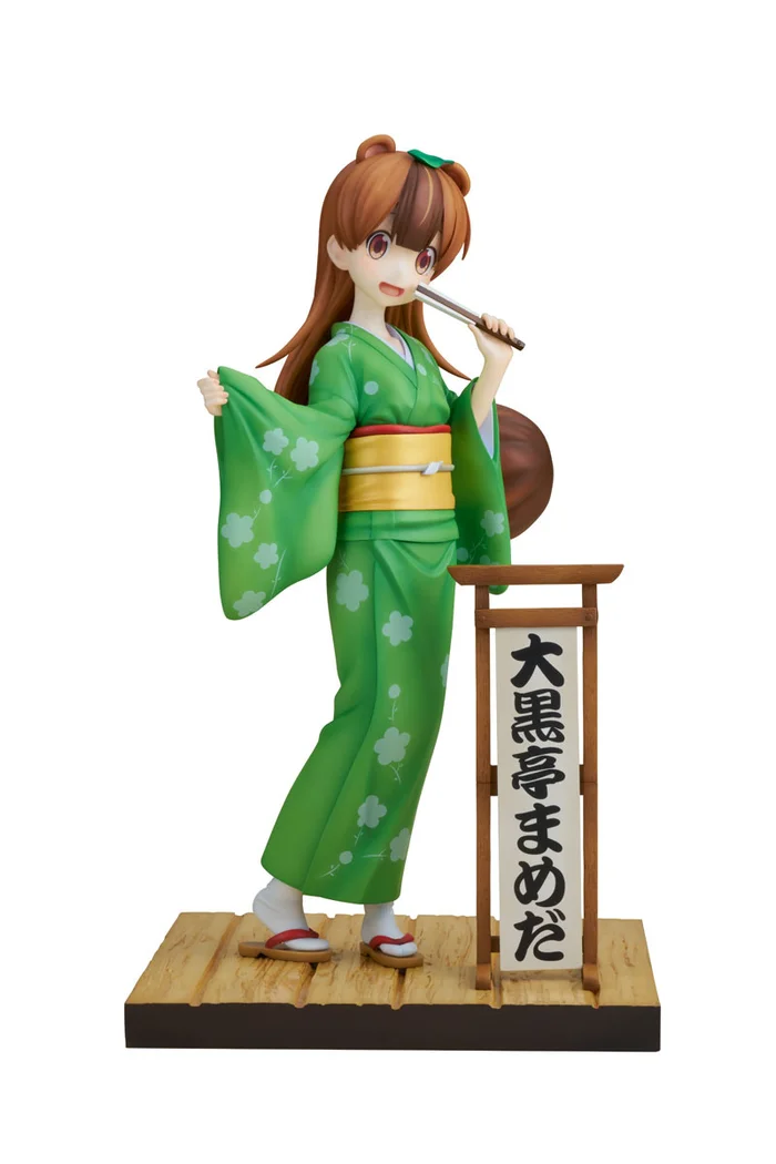 Sculptors Honoka and Sparrow have collaborated with F:NEX to bring you a whimsical new figure of Daikokutei Mameda from the delightful series My Master Has No Tail! At 1/7 scale, Mameda measures 8.7″ tall. She’s dressed in her classic green kimono decorated with a white flower pattern. With her tanuki ears perked up, her tail swinging behind her, and a cheerful open-mouth smile on her face, she’s a faithful representation of the lovable character! Mameda’s base has a sign that reads “Daikokutei Mameda” in Japanese characters and a wooden base that can be connected to the separately sold figure of her master