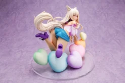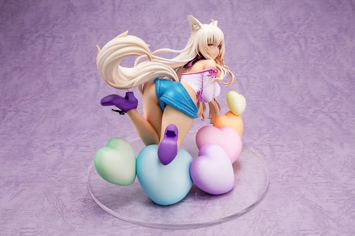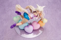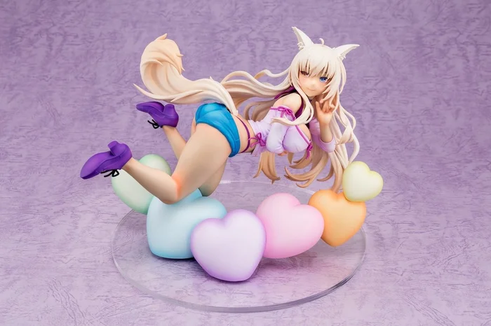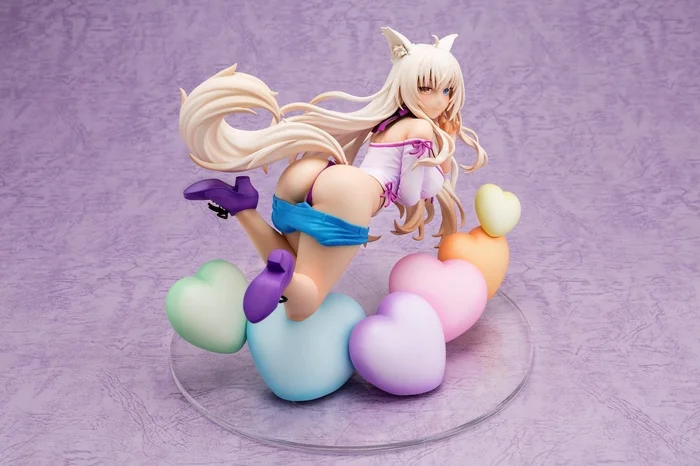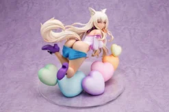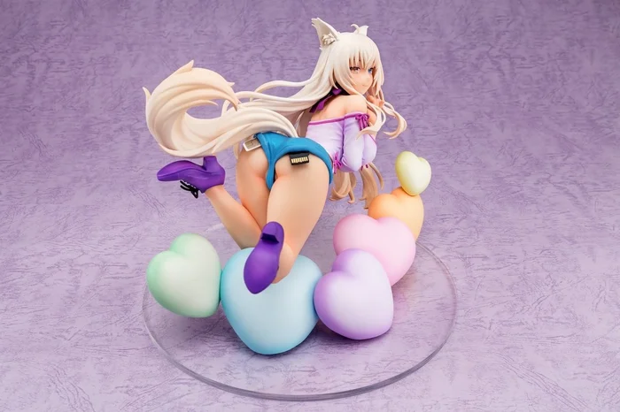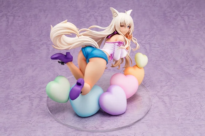 We just could not pick up our jaws off the floor after seeing this bootylicious rendition of Nekopara‘s Coconut! At an incredible 1/6 scale, this cat girl seemed to float right into our dreams on half a dozen colorful pastel hearts! Based off an illustration by series creator, Sayori, Coconut is posed on her knees with both her luxurious cream-colored hair and tail fluffed up and tossed about. That alone makes this piece wonderfully aesthetic, but what truly clinches it are her stretched denim booty shorts!
