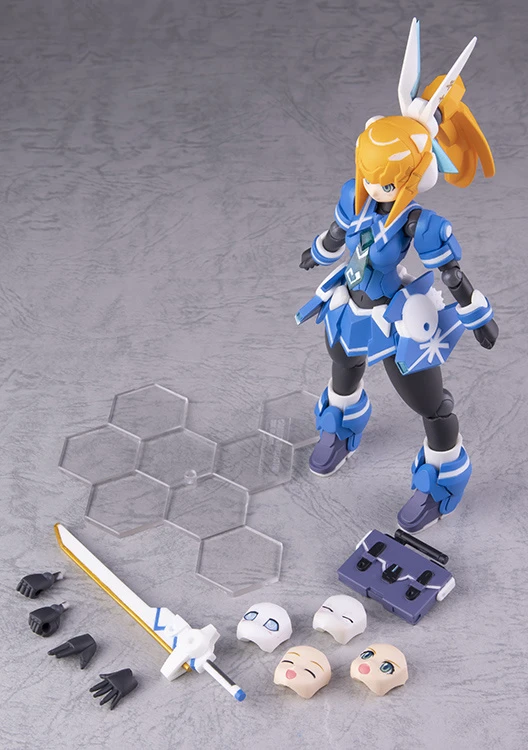 From Daibadi comes the thicc-thighed Robot Neoanthropinae Polynian Really, who has been updated with a new FMM body in an all-black design! She comes with five face plates (three organic Really faces and two synthetic Motoroid Arty faces), plus optional hands, a sword, a bag, and a hexagonal base with an asymmetrical design. She also features removable parts including her skirt and armor, so you can recreate several different looks.