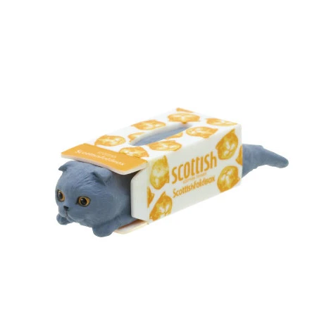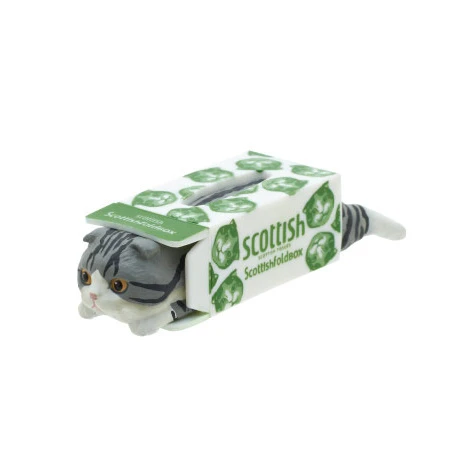Scottish fold cats have squished themselves inside empty tissue boxes. (=^-^=) Each measures 2.2” and has been carefully painted so that the cats’ fur and eyes look realistic. The tissue boxes are also detailed and brightly colored. The contrast between the two is eye-catching! Stack them atop each other for an adorable display. Collect all 5!