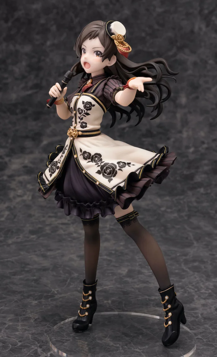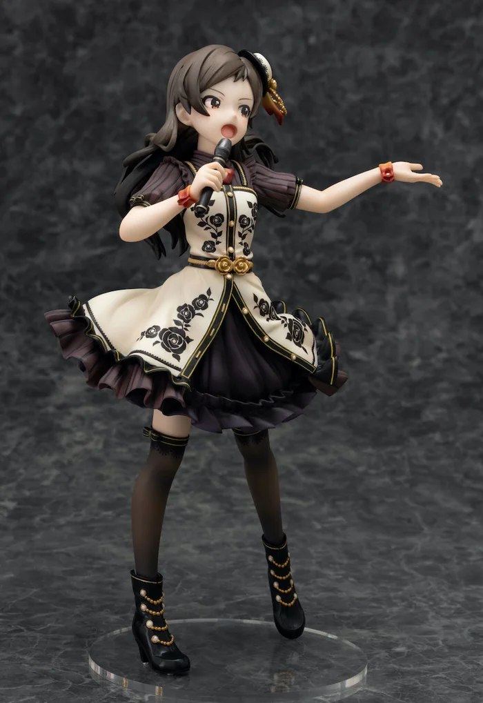 From Ami Ami and sculpted by Shougo comes this 1/8 scale figure of Shiho Kitazawa from The Idolm@ster Million Live!. Based on the artwork of her SSR card “A World Dyed in Autumn Colors,” she wears her beautiful Chocoliere Rose dress complete with a cute mini hat, high-heel boots, and thigh-high stockings. Let her belt out a tune in your collection!