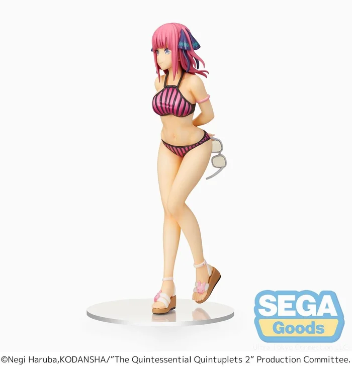 From SEGA’s Premium Figure line of affordable prize figures comes the second sister of the Nakano Quintuplets, Nino Nakano, in a swimsuit! Measuring 7.5”, the The Quintessential Quintuplets ∬ heroine is captured in a cute pose as she leans forward and gives a kind smile.