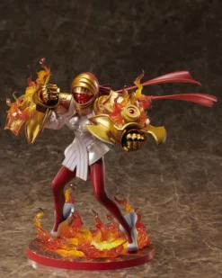 From the hugely popular game Fate/Extella comes a 1/7 scale figure of the flaming crimson tyrant emperor, Saber Regalia Nero Claudius! Standing ready to fight with her fists up and a confident smile on her face, Nero stands on a flaming base fully armed with flaming golden fists and a golden helmet. She also comes with two additional head pieces (one of her helmet with the visor down and one without her helmet), and her fist armor parts can also be removed, giving fans several ways to display her. Summon this Heroic Spirit to your collection!